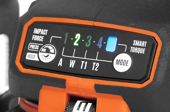 Винтоверт обладает 4 интеллектуальными режимами работы: «A» - Закручивание на полной скорости. Откручивание на полной скорости с автоматической остановкой когда крепеж откручен. «W» - Вращение с минимальной скоростью при начале закручивания и автоматическое повышение при появлении нагрузки. «Т1» - Начало вращения на максимальной скорости. Автоматически останавливается при повышении нагрузки. Время остановки варьируется в зависимости от крепежа и материала. «Т2» - Начало вращения на максимальной скорости. Автоматическое снижение скорость вращения при повышении нагрузки.